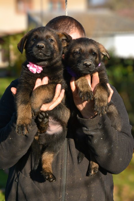 Nabízíme na prodej dva překrásné pejsky Německého ovčáka, po zrušené rezervaci v den odběru. Oba pejsci mají opravdu překrásný exterier, tmavé oko, jeden sytou vlkošedou barvu, druhý celočerný. Předpokládáme vyrovnané povahy, velmi krásný a líbivý exterier, přátelskou povahu a učenlivost. Prostě dokonalý parťák do rodiny nebo klidně i k dalšímu výcviku. Nezávazné návštěvy u nás vítáme. Více informací v letáčku a na našich stránkách. Balíček pro štěňátko do začátku, kupní smlouva, oficiální chovatelská stanice FCI. Výběrový chov. Rodiče mají úplně všechny zdravotní testy negativní! 1.třída chovnosti.