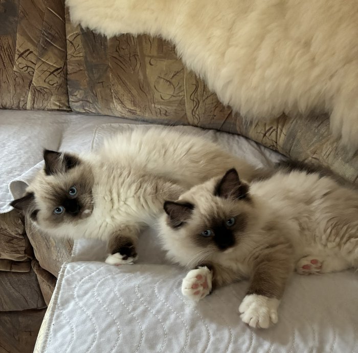 Jsme dva kocourci Ragdoll bez PP hledáme nové páníčky na mazlení a hraní, jsme odčervení a očkování, naučení na kočičí WC (Olomoucko)