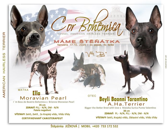 Poslední volný chlapeček plemene Americký bezsrstý teriér s PP pod FCI.