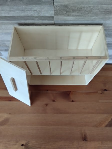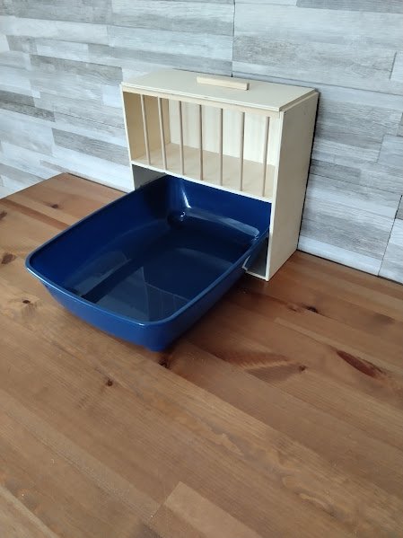 Vyrobeno s překližky. Lepeno nezávadným lepidlem pro zvířata. Rozměry-šířka a výška 30 cm, hloubka 13 cm. Možnost vyrobit i jiné rozměry. Cena bez plastového wc.