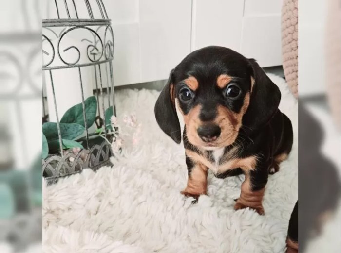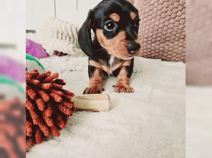 prodám štěňátko kluka Jezevčík hladkosrstý trpasličí, je velmi malého vzrůstu, čipovaný, očkovaný, odčervovaný. Hravá a vychovaná v blízkosti malých dětí.