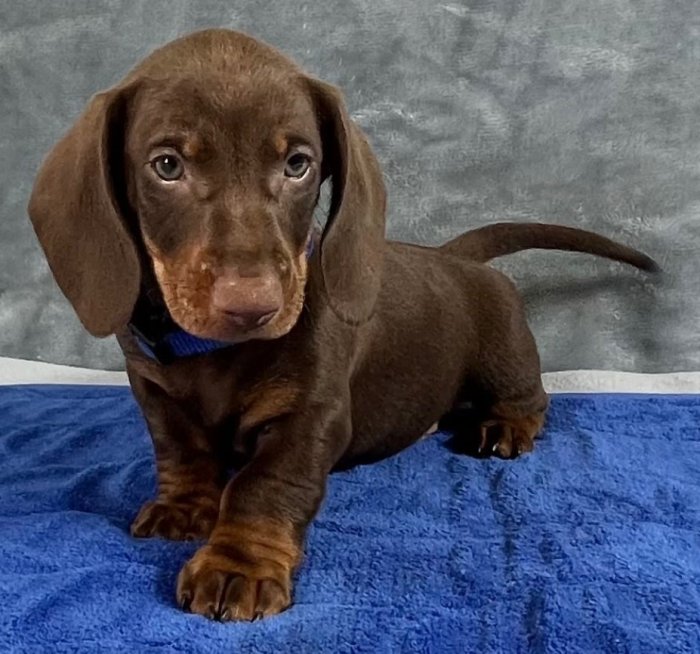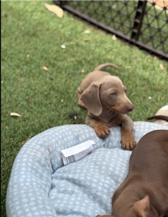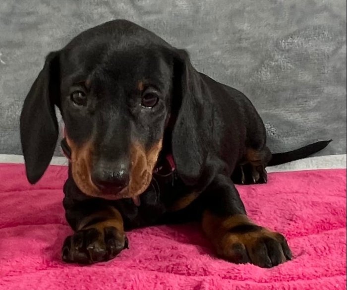 prodám štěňátko kluka Jezevčík hladkosrstý trpasličí, je velmi malého vzrůstu, čipovaný, očkovaný, odčervovaný. Hravá a vychovaná v blízkosti malých dětí.