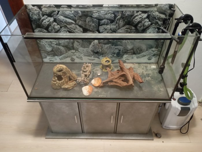 Prodám komplet akvárium s komodou filtrem a nástavbou vhodné pro vodní želvu.rozměry akva 100x50x40cm , kompletní výška 150cm.Cenová představa 8tisic.Barva šedá beton.