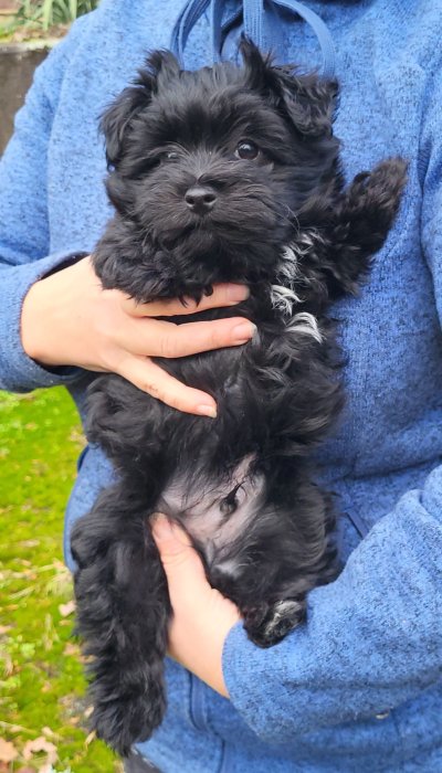 Šťěňátko havanského psíka,čistokrevný bez PP,černý s malou bílou náprsenkou,očkovaný,odčervený,veselý,hravý,připravený do nové rodiny,nezávazná návštěva vítána,odběr možný ihned