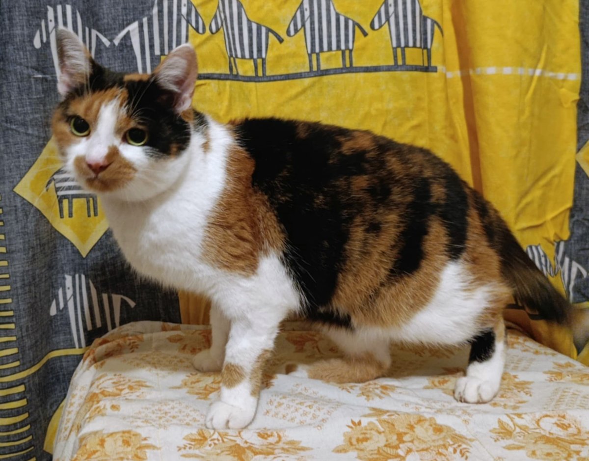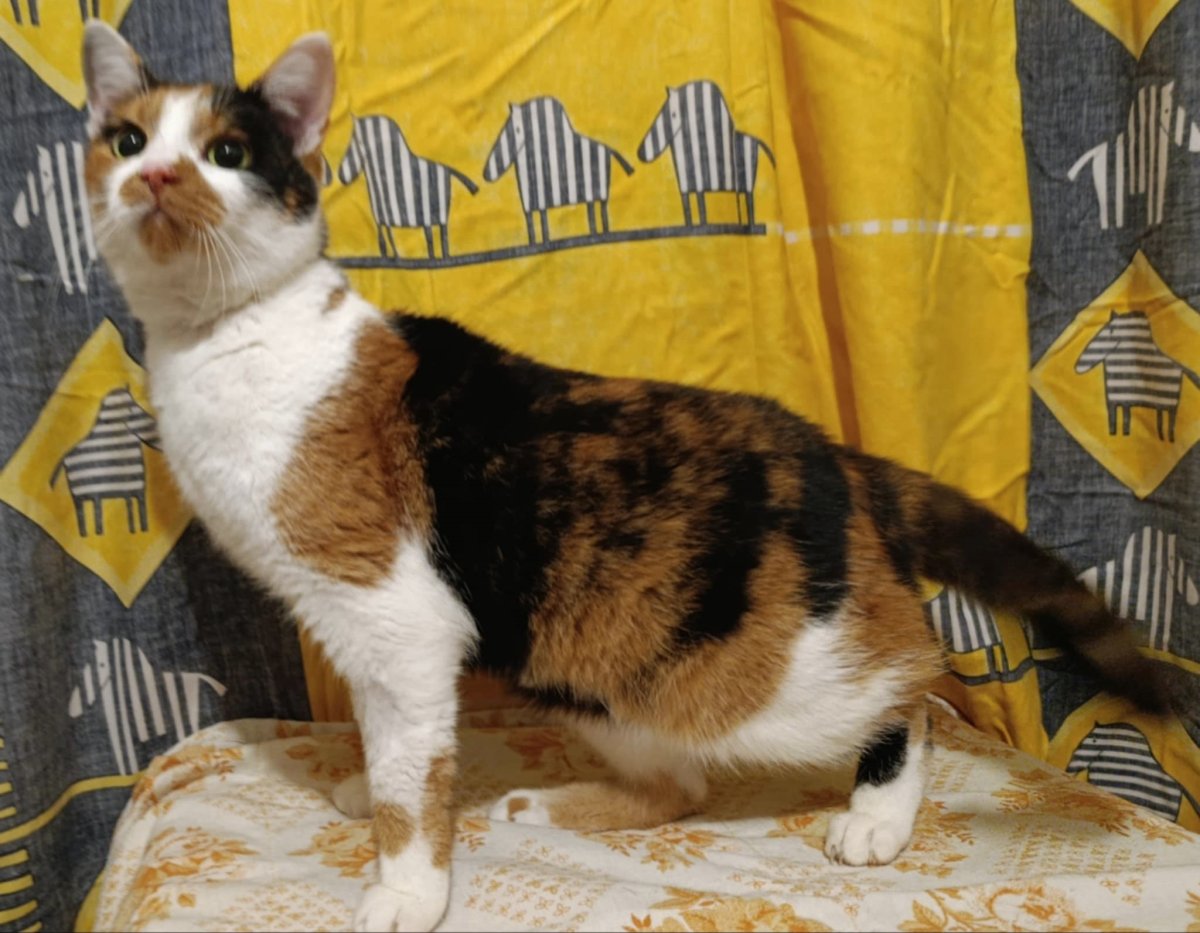 Byla nalezena jako kotě v Jindřichově Hradci se zlomenou nohou. Nožku jsme nechali operativně spravit a kočička našla domov. Bohužel se nám nyní po šesti letech vrátila zpět, protože jí selhaly ledviny a k tomu se přidaly zažívací problémy.
