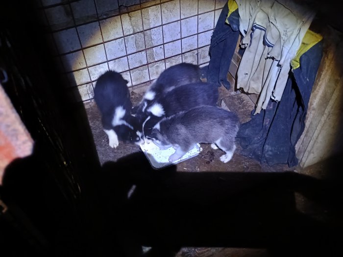 Prodám dvě štěňata sibiřského husky, černobílá, hnědooká, bez PP, psi, rodiče sportovně vedení s průkazem původu.