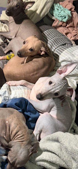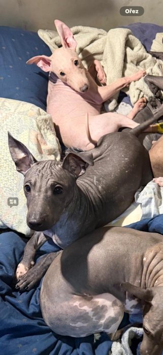 Do milé rodiny źa rozumnou cenu 3,5 měsíční štěňata (pejsci) - americký bezsrstý teriér s PP, čipem, pasem, očkováním. Vychováváni v domácím prostředí. Tři pejsci: bílá čokoláda, černý a modrý.