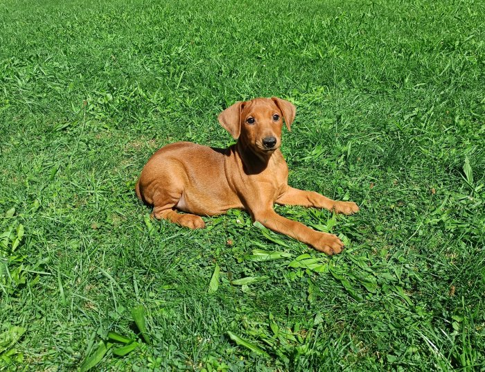 Německý pinč - /střední vel.45-50cm/ Prodám červená štěňata s PP, volný pejsek a fenka stáří 6. měs. kompletně očkovaní, očipovaní, pravidelně preventivně odčervovaní, odběr možný ihned, cena dohodou, inz. platí do smazání, více info po tel.721419686 na sms nereaguji
