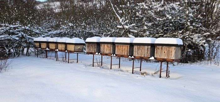 Letošní oddělky včelstva matky f1 modrá v přeléčení a zakrmená v nových úlech na 2 nástavcích 39*24cm Varoadno z masivu (smrk)osazená zateplená stříška z...