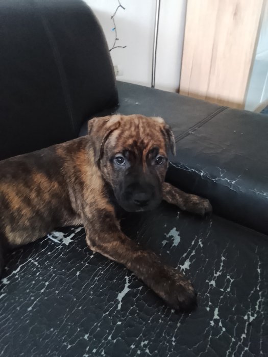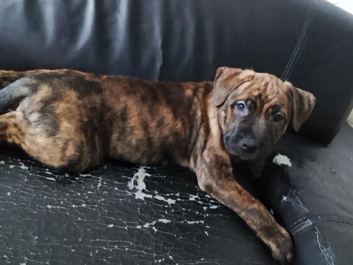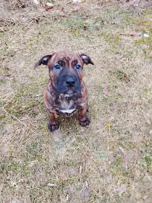 Prodám štěňátko staforda fenka dva měsíce stará odčervená, naočkovaná.Do dobrých rukou děkuji.