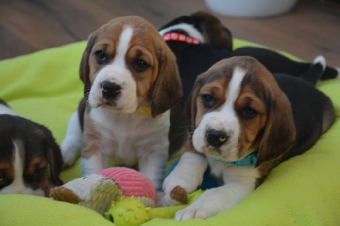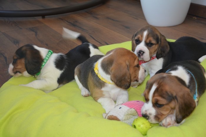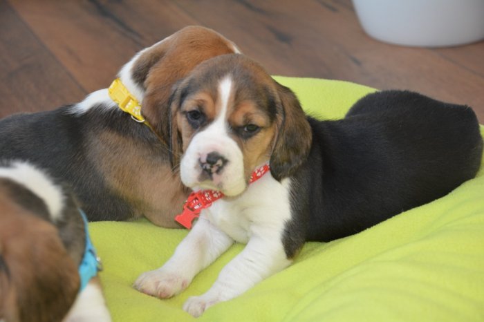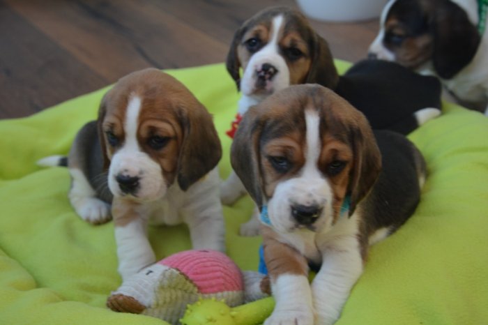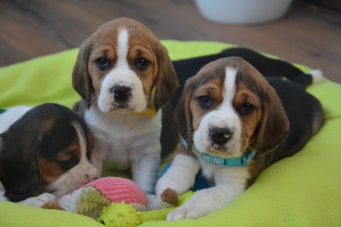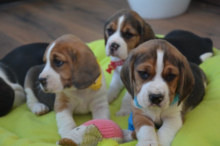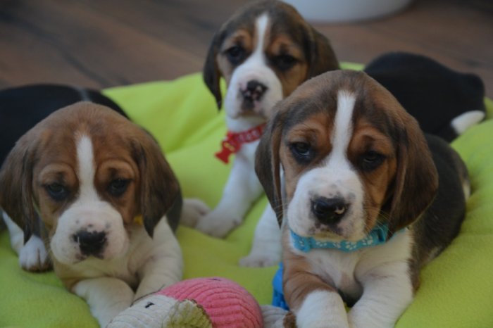 Prodáme krásná tricolorní štěňátka bígla (viz aktuální fotografie), štěňátka jsou 1x očkovaná a 3x odčervená, čipovaná, oba rodiče štěňátek jsou u nás k vidění, kupní smlouva samozřejmostí. V případě zájmu o jedno ze štěňátek volejte 735 532 933