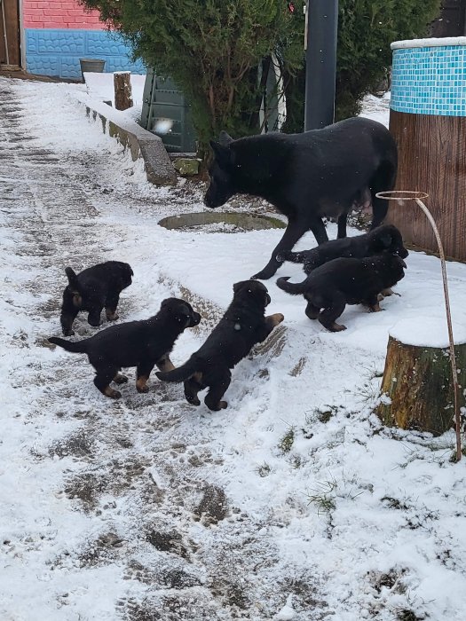 Nabízím čistokrevný štěňata bez PP k rezervaci poslední dva pejsci. Štěňata budou odčervena a naočkována. Štěňátka jsou po rodičích s PP. Máma s PP celo-černá po výborných předcích, je výborná máma, dobrý hlídač, zvyklá na děti a nebojí se ohňostrojů, bouřek ani blesků. Táta s PP typ Rex, výborný ochránce, hlídač a výborná poslušnost povelů.