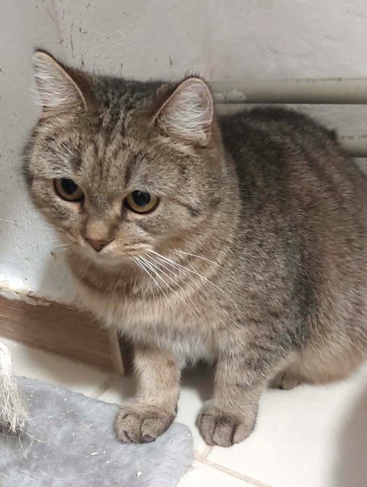 Asi roční kočka, nekontaktní, nedůvěřivá kastrovaná, ošetřena proti parazitům. Tel.: 777214680