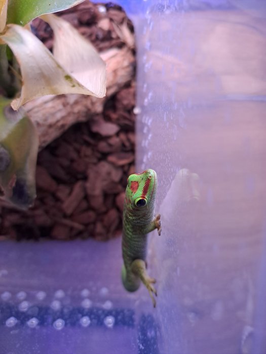 Prodám 2ks samici 1ks samec Phelsuma Grandis věk 4 měsíců chována na cvrčkách pod UVB.