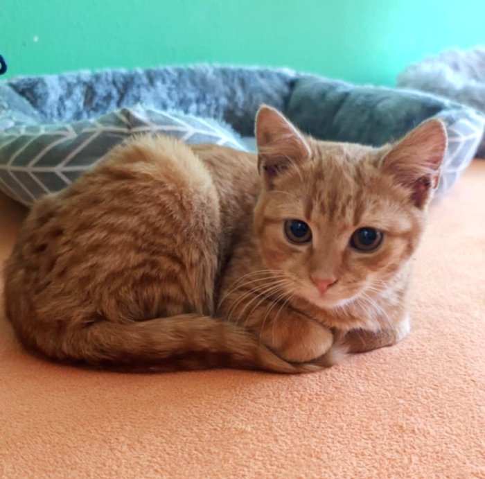 Hubert, kocour, narozen cca 8/2025 (ev. číslo 2026/02/03), budoucí kastrace podmínkou adopce, očkovaný, č. mikročipu 981020004954626. 3 kocourci byli nalezeni u obce...