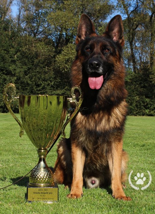 1. O: Agassi Akia nawa, VA1 SK, korung, zkoušky: SVV1, SVV2 . M: Yrga Hartis Bohemia, výborná,1 tř. Chovnosti, 5JX1/P, zkoušky: ZVV2, BH, IGP3,SPR3.