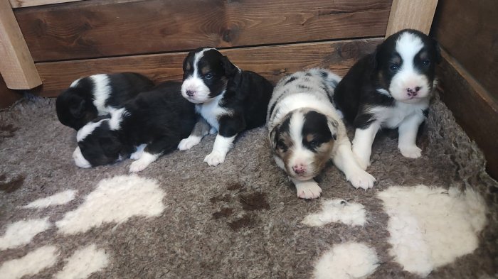 Jsme malá rodinná chovatelská stanice a nabízíme k rezervaci krásná štěňátka australského ovčáka s průkazem původu (FCI).