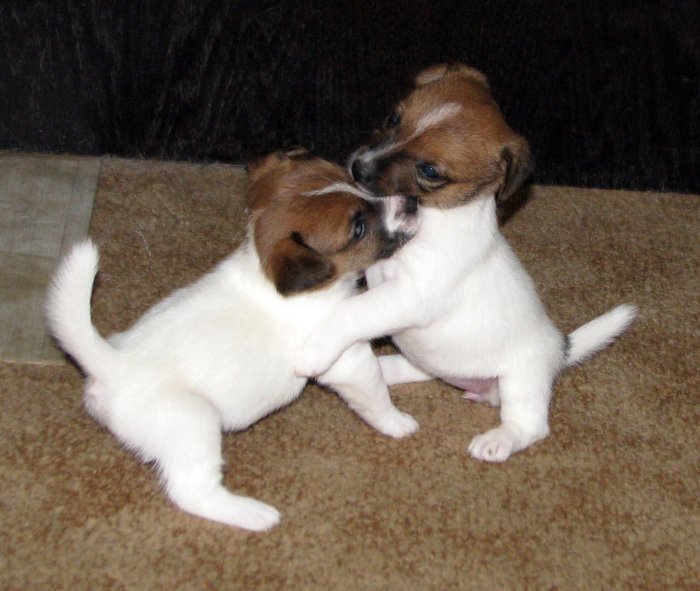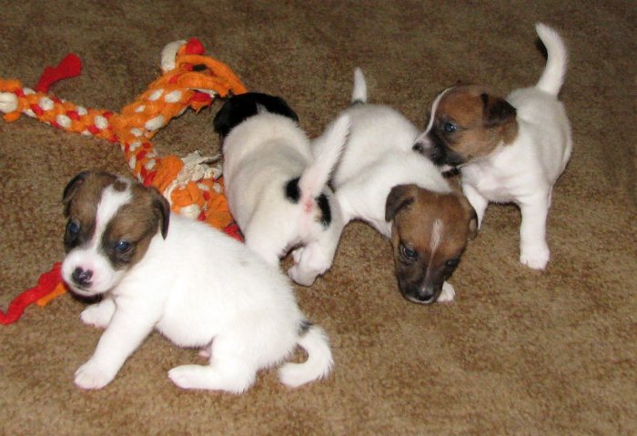 Chovatelská stanice přijímá rezervace na roztomilá štěňátka Jack Russell teriéra s PP – 3 pejsci a 2 fenky - z kvalitního vrhu s hladkou srstí. Můžete si mezi nimi vybrat veselého a milujícího parťáka na dlouhé roky, vašeho nového nejlepšího kámoše. Naši psi s průkazem původu vynikají vyrovnanou povahou a přátelským temperamentem - nejsou to problémové "napodobeniny" bez PP (papírů), které často ani nejsou pravými JRT. Štěnda budou mít při odběru v polovině března kompletní dokumentaci – Europas, kupní smlouvu, evidenční list, průkaz původu, očkování, čip a odčervení. Jejich předci jsou zdravotně testovaní a plnochrupí. JRT s PP se přizpůsobí vašemu životnímu stylu, potřebuje jen lásku a základní výchovu. Napište mi na WhatsApp, SMS nebo email s telefonním číslem, ráda zavolám zpět. Více fotek a videí na Fb - Armonia Canina nebo vám je pošlu.