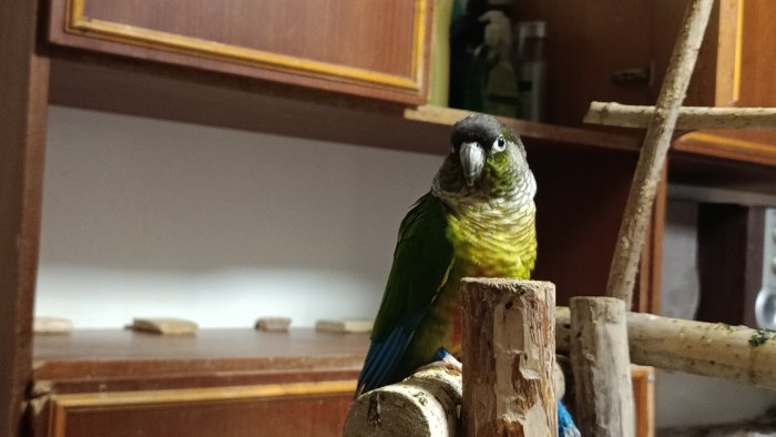 Prodám pyruru zelenolící samce v květnu bude mít 3 roky je ručně dokrmený