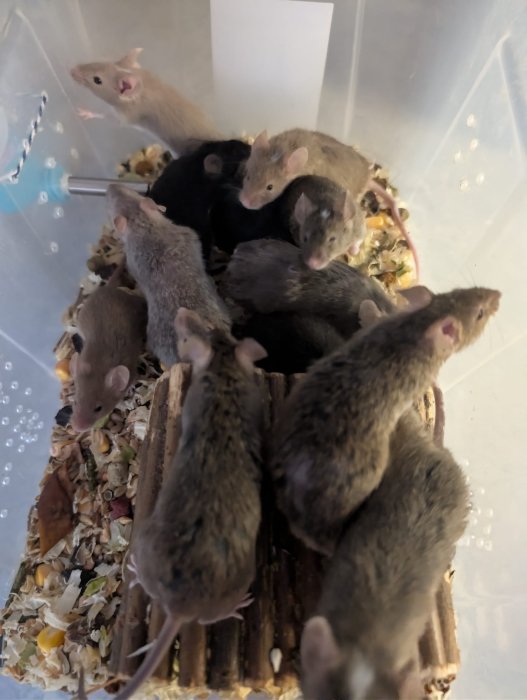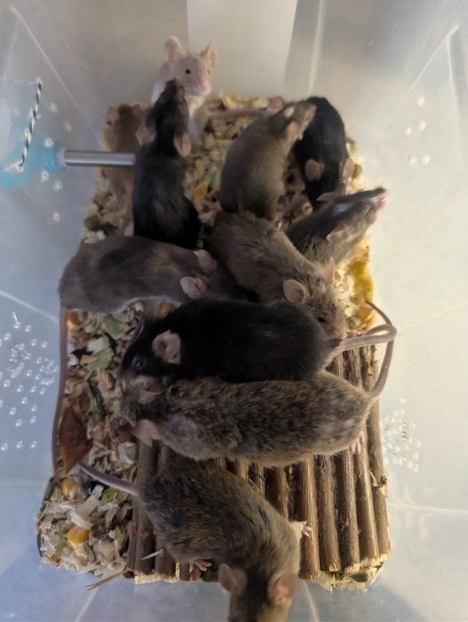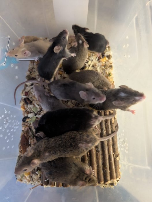 Dobrý den, daruji myši z důvodu neplánovaného a nechtěného přemnožení. Převážně samci (viz foto), ale možné i samice.
