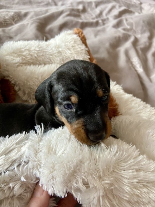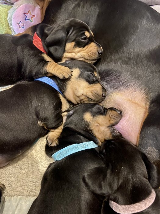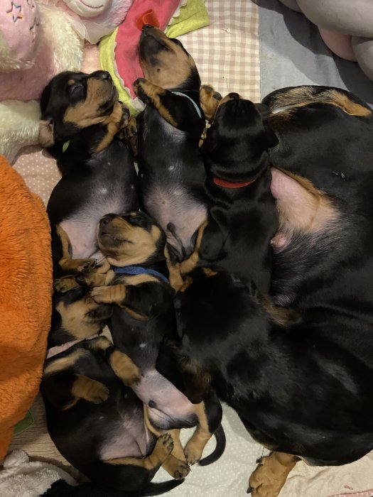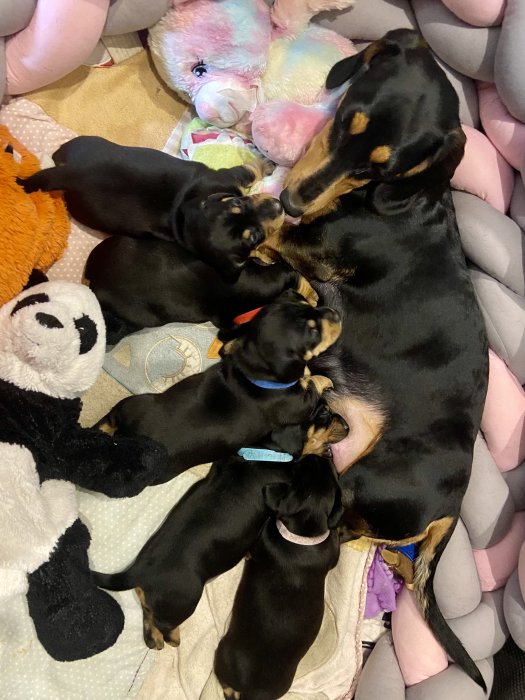 Nabízím štěňátka hladkosrstého jezevčíka bez průkazu původu. Štěňátka se narodila 2.2.2026 a ok odběru budou od 27.3.2026.