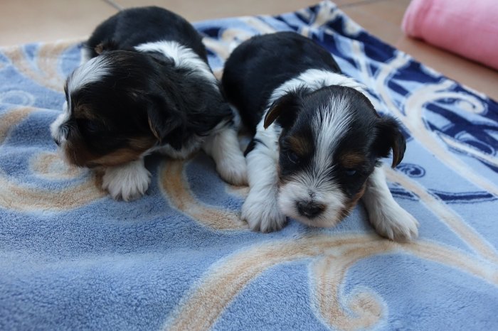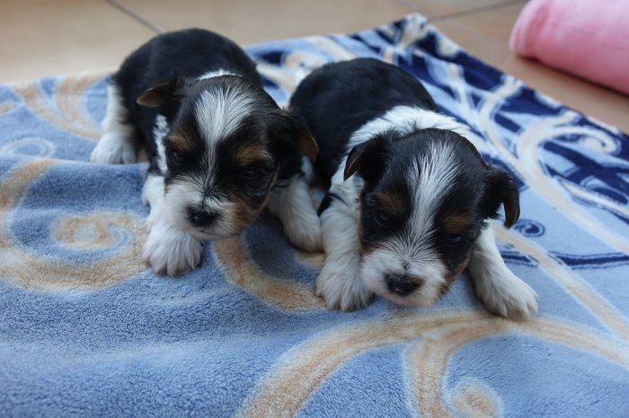 Naše malá CHS nabízí k rezervaci štěňátka biewer jorkšírů s PP, 2 pejsky a jednu fenku. Štěňátka vyrůstají v rodině, jsou vymazlená, zvyklá na děti i kočku. Štěňátka jsou učena na plenku, jsou pravidelně odčervována a už začínají papat. Při odběru