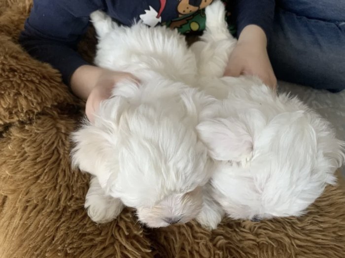 Štěňátka maltezáčků vyhlíží nové páničky . Jsou očkované , odčervené a čipované . Jsou to čiperná a mazlivá štěňátka . Máme pejska a fenečku