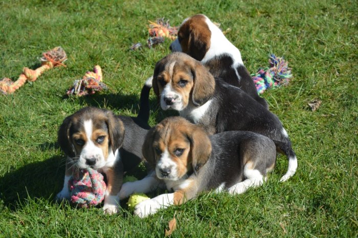 Nabízíme k prodeji krásná tricolorní štěňátka bígla - pouze chlapečky (viz aktuální foto) štěňátka jsou očkovaná, odčervená, čipovaná, oba rodiče štěňátek jsou u nás k vidění, kupní smlouva samozřejmostí. V případě zájmu volejte 735 532 933