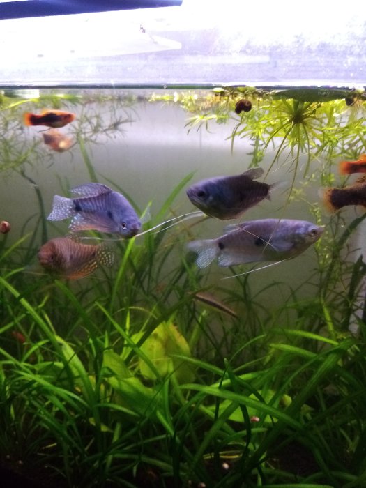 Prodám 4 dospělé čichavce šedé (modré), délka cca 10cm. Jeden samec, tři samice. Tři jsou původní, přírodní barevná forma a jedna samice je barevně velmi atraktivní kříženec šedého a zlatého.