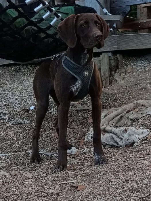 Půlroční fena Německého ohaře . Zvyklá na jiná zvířata kočky psy ...