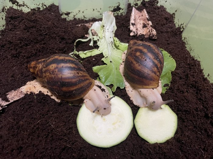 - 2x šnečci cca 4,5 a 5 cm líhnutí v prosinci