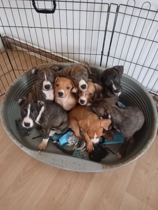 Prodám krásná štěňátka amerického stafordšírskeho teriéra,bez PP.Stenatka se narodila 18.2.a jsou ihned k odběru.Jsou očkována,, odčervená a čipovana.Mame 5...