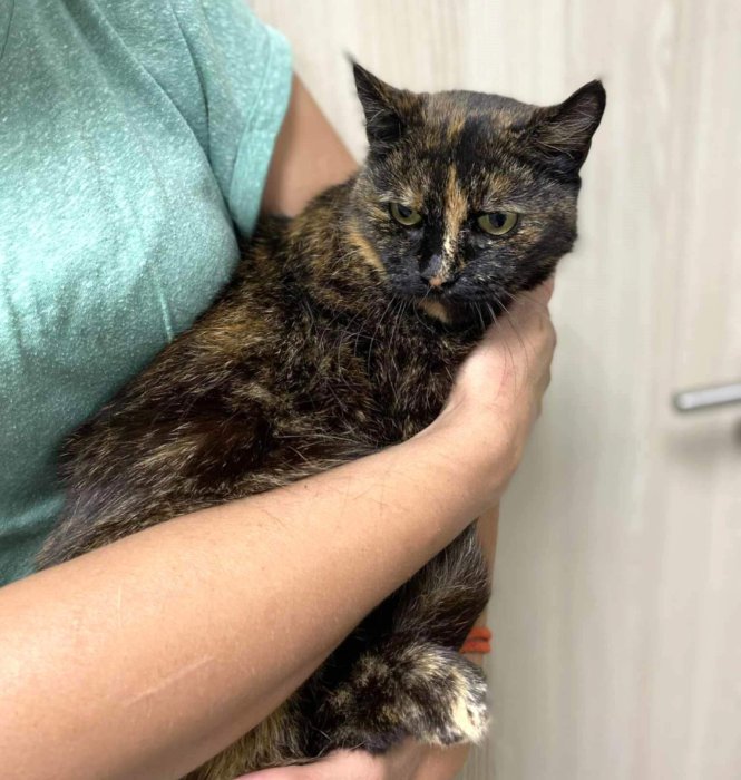 Lékorka, kočka, narozená cca 2015-2017, (ev. číslo 2025/08/01), KASTROVANÁ, očkovaná, č. mikročipu 981020000781012, test FIV/FeLV negativní.