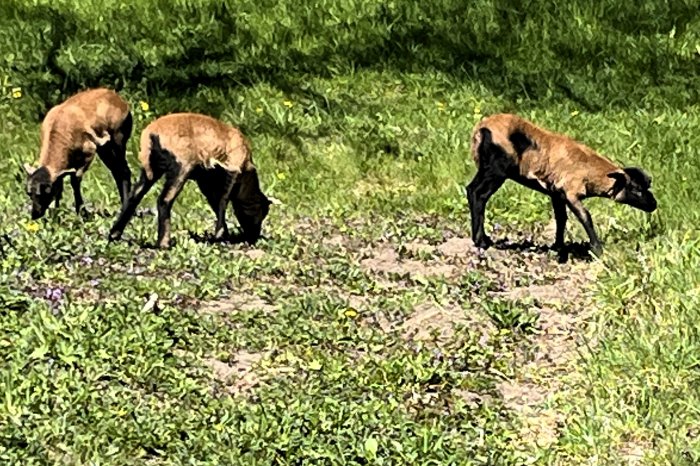 Prodám letošní jehničky kamerunské ovce - srnčí barvy, narozené v polovině března,