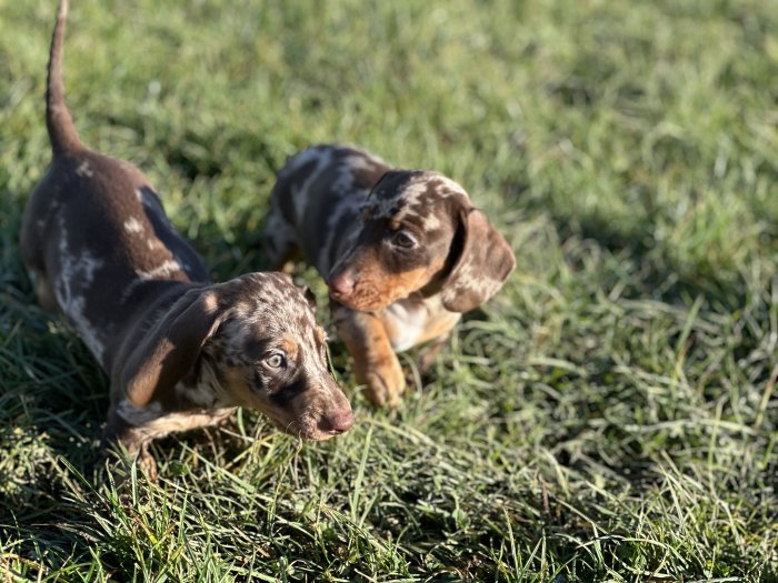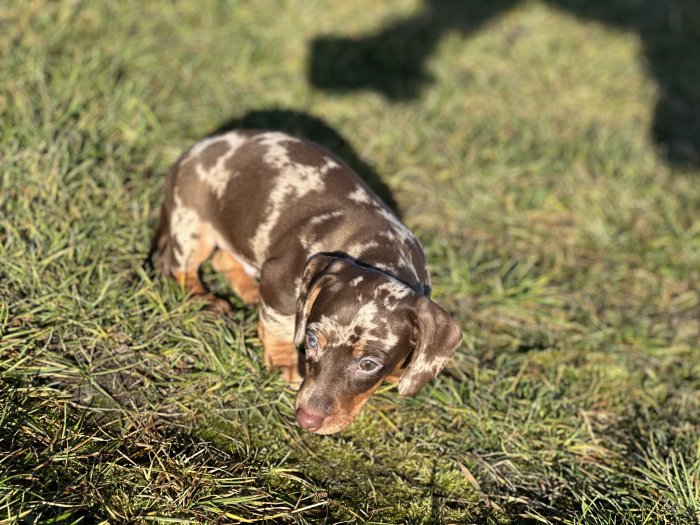 Nabízím štěňátka jezevčíka,8 týdnů,zbarvení čokomerle.Zatím je kluk i holka.
