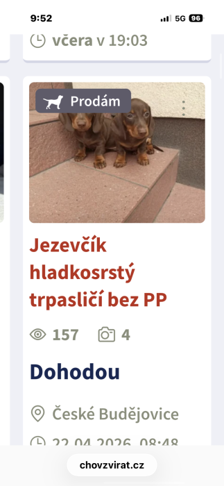 POZOR ⚠️ Inzerce jezevčíků- České Budějovice ⚠️Frýdek-Místek⚠️Tábor ⚠️!!! Zde množitelé a překupníci prodávají štěňata z množíren!!!! Nemocná štěňata!!! Inzerují nepřetržitě a to i na Sbazar, Bazoš!!!! Byty požívají jen k prodeji štěňat!!!! Nenaleťte těmto podvodníkům!!! Měnící místa prodeje, jména, fotografie!!!! Plus- nabidky za 6000,- , pouze zaplatíte zálohy a štěně nikdy neuvidíte! Vaš tým,,ZASTAVME MNŽÍRNY”