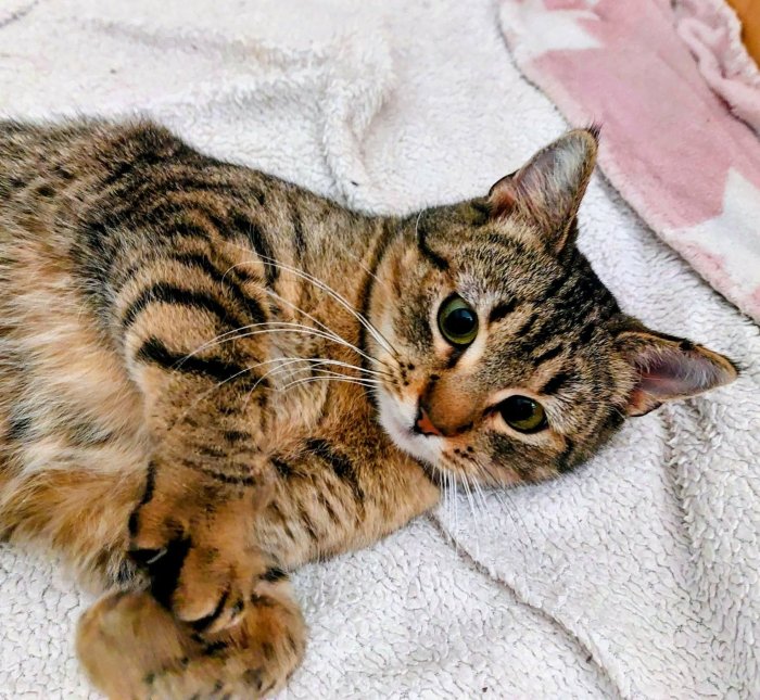 Lékorka, kočka, narozená cca 2015-2017, (ev. číslo 2025/08/01), KASTROVANÁ, očkovaná, č. mikročipu 981020000781012, test FIV/FeLV negativní. Kočičku jsme přijali...