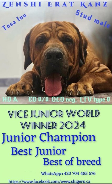 OTEC: ZENSHI ERAT KANZ - Více junior world winner, Junior champion, Derby winner, Best Derby Winner, Mnohokrát BOB, BOS, BOJ