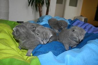 Nádherní 3 kocourci a 1 kočička britské modré. Jedno od 2500,- Kč Čistokrevná, naočkovaná s mezinárodním očkovacím průkazem. Naučená na kočičí WC, odčervená. K odběru červen/červenec 2010.rn
