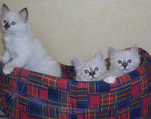 Dvě britská koťata bez PP, obě holčičky. První krátkosrstá bílá colorpoint s modrýma očima, druhá krátkosrstá červená s kresbou. Máme z nich radost, neboť jde...