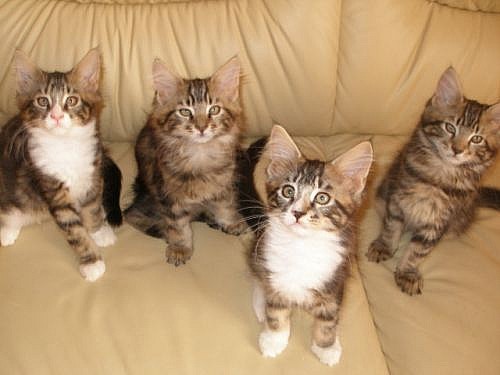 Prodám koťátka - kocourky mainské mývalí kočky bez PP.Koťata narozena 21.4.2010, odčervena, očkována, zcela samostatná.K odběru ihned.V případě zájmu zašlu další podrobnosti i fota, nezávazná návštěva vítána. Na SMS nereaguji. tel. 737148384