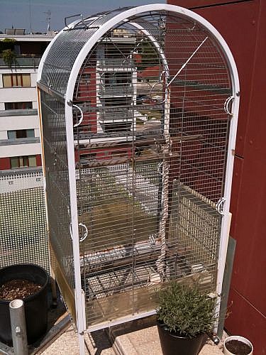 Stála venku a je třeba ji trošku dát dohromady, nic ji nechybí a jistě se bude hodit ještě nějakému papouškovi.
