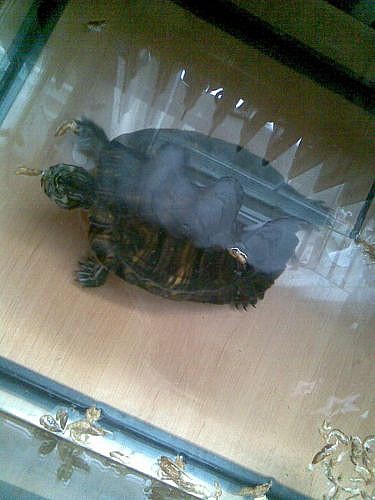 Daruji vodní želvu, cca 2 roky. Je potřeba terárium, nebo zahradní rybníček. Žere hlavně sušené krevety, nebo syrové kuřecí maso. Spěchá