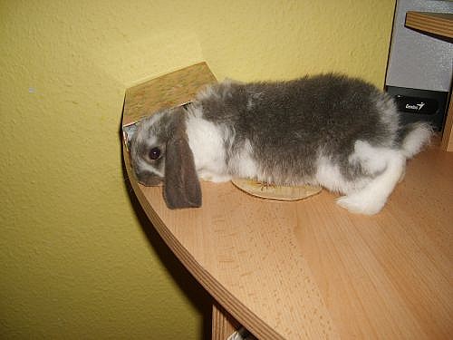 prodám králika beránka stáří 1 rok,šedobílý,nerad se nosí