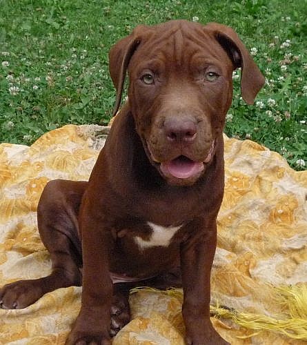 Nabízím k prodeji krásná štěnata amerického pitbulteriéra red nose bez PP. Otec mohutný cekoladovy.