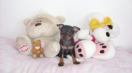 Prodám štěňátka Pražského krysaříka, očkovaná, odčervená, kupírované ocásky. Dalé nabízím otce ke krytí.