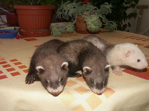 PRODáM - Freťata v barvách tchoř, jezevec, albín, šampaň světlý, tmavý i s jezevčím pruhem, simská, harlekýn i stříbrný, panda, stříbrná panda, DEW (bílá tmavooká) s proužkem na hřbetě a ocásku. Věk 6 až 8 týdnů, jsou zvyklá na kontakt s člověkem a se psem, krmena kvalitními granulemi, které Vám mohu také nabídnout. S chovem poradím, vysvětlím zásady nabité vlastní 12 letou praxí. Osobní odběr u nás možný ihned, po dohodě možno odebrat v Kolíně, Hradci Králové, Týništi nad Orlicí, Přerově nebo v Praze. Cena od 350,-Kč za tchořovitou. Tel.: 724 119 705 .