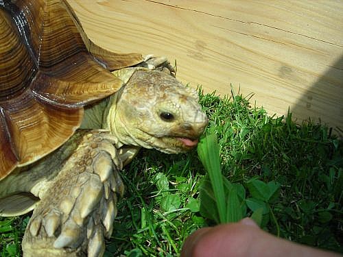 Prodám sedmiletého samce želvy ostruhaté (Geochelone sulcata) do rukou zkušeného chovatele větších druhů želv, který má k dispozici prostorné terárium a venkovní výběh na léto. Cena: 5000 Kč. Dodání zvířete možnému zájemci zajistím. rnrn