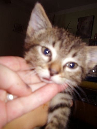 Nabízíme velice kontaktní koťátko mazlené dítětem. Samo papá granulky i kapsičky pro koťátka sebou je dostane také.