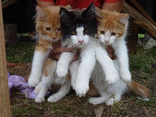 Prodám nádherná koťátka mainské mývalí kočky, kluci i holky, čistokrevná, bez PP, po rodičích s PP (oba k vidění u nás), očkovaná, odčervená, naučená chodit na suché WC, plně odstavená (krmená kvalitními granulemi Royal Canin), zvyklá na psy i pobyt venku, vymazlená, k odběru ihned. Více foto na našem webu http://farmabojov.wz.cz/, sekce Kočičky. V ceně nabízíme i bezplatné poradenství při chovu, v případě Vaší dovolené apod. je možné domluvit hlídání.